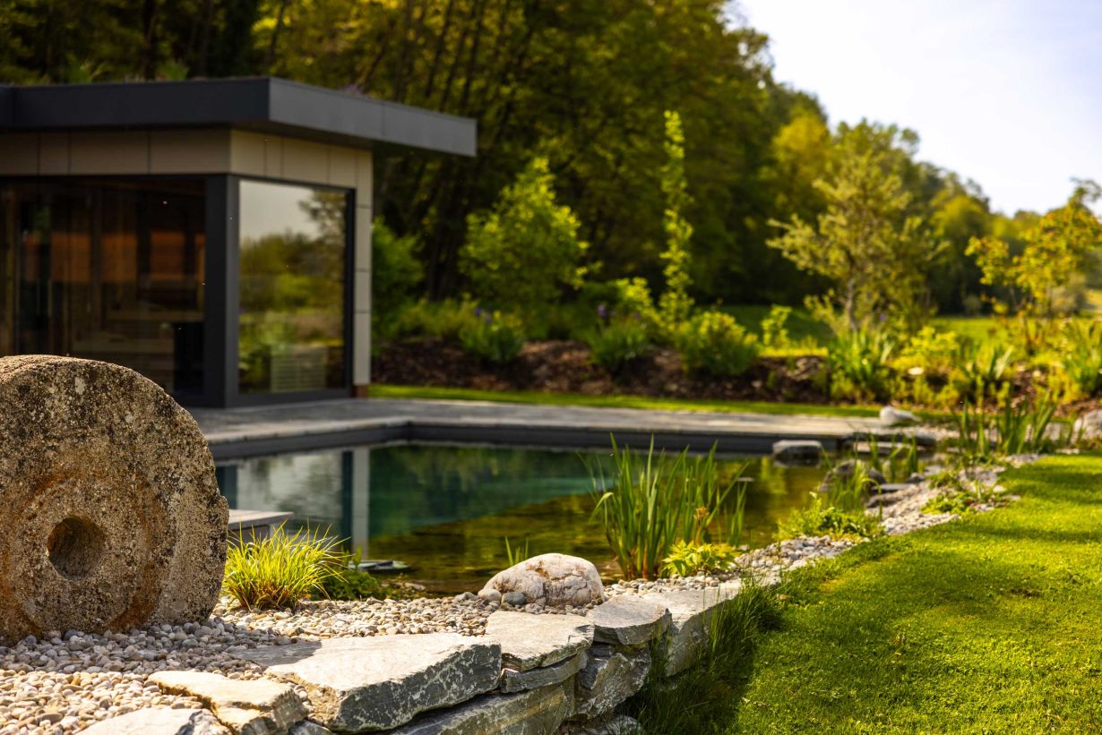 Ein Schwimmteich (auch Badeteich genannt) verbindet das Beste von Biotop und Schwimmbad für ein naturnahes Badeerlebnis. Anders als beim klassischen Pool bildet der Schwimmteich jedoch das ganze Jahr über den wunderschönen und lebendigen Mittelpunkt Ihres Gartens, der zu jeder Jahreszeit seinen speziellen Charme hat.
